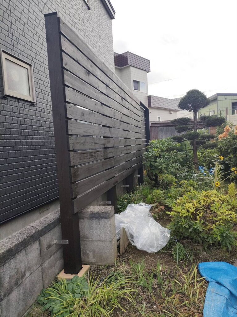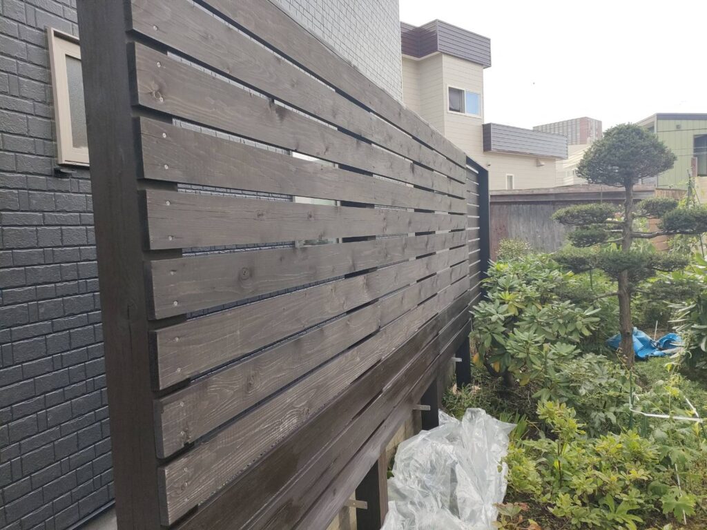 清田区にて木フェンスの塗装を施工させていただきました。